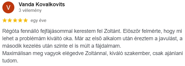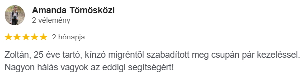 “Kedves Zoltán! Megszűnt a migrénem, úgy tűnik tényleg a nyakam miatt volt, köszönöm!” – Viktor (37)